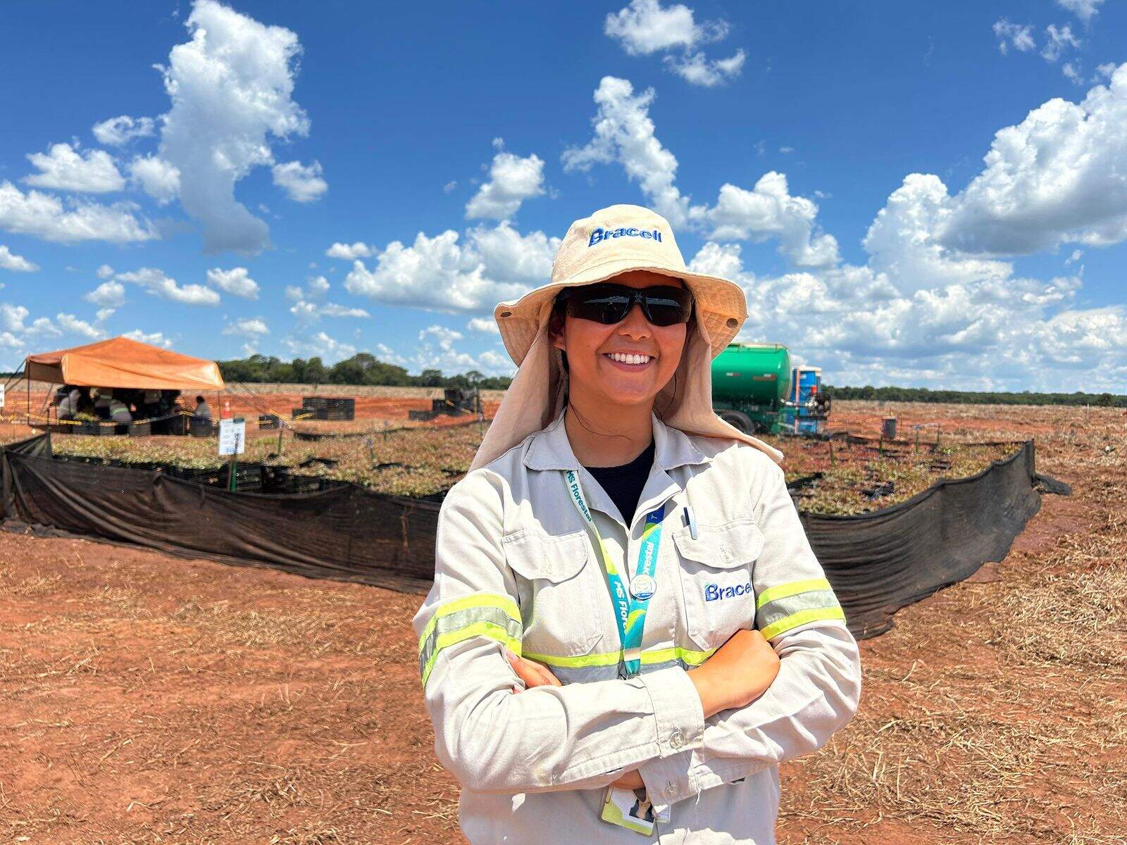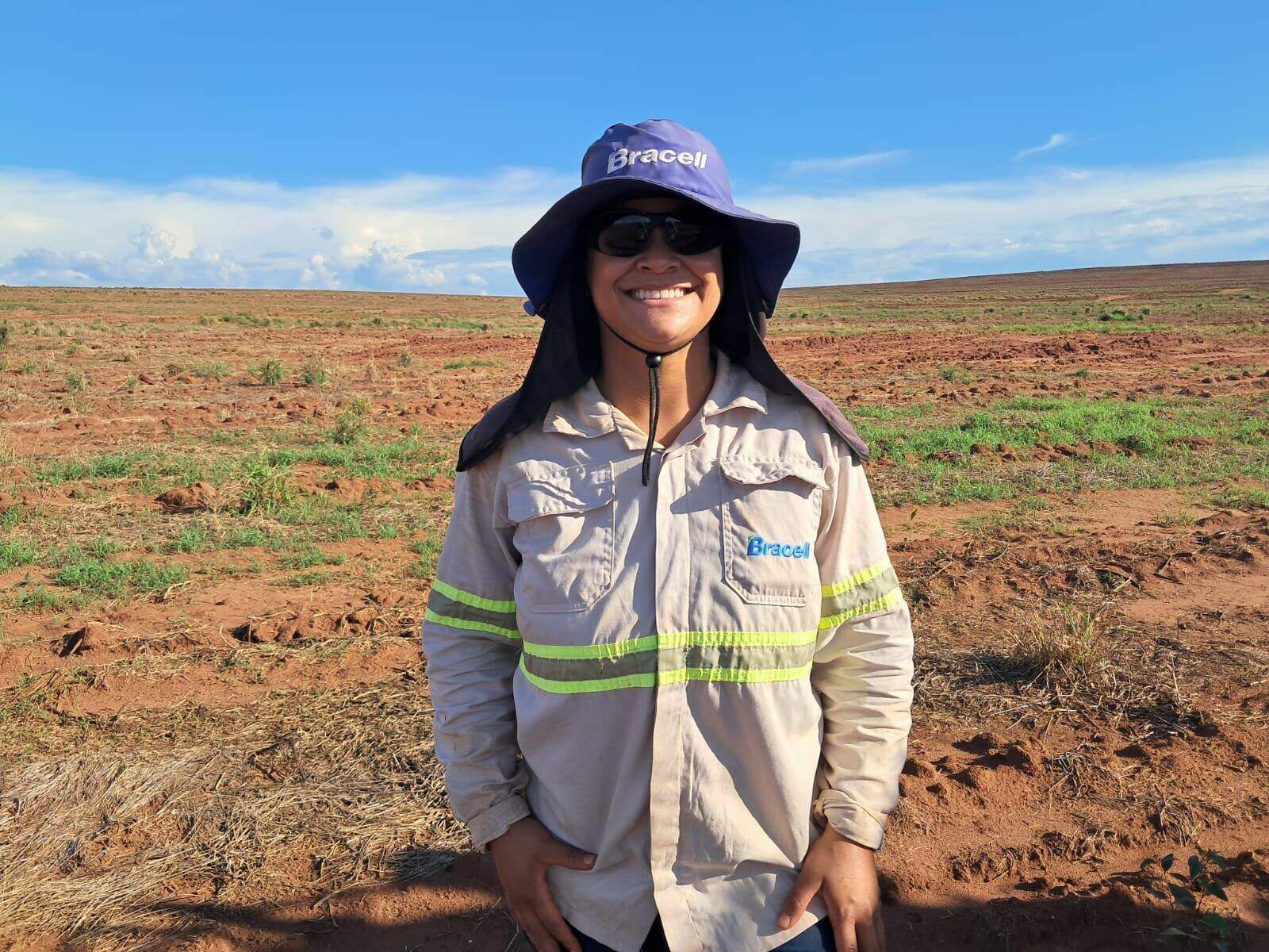 “Aqui lidero uma equipe de oito pessoas, garantindo a qualidade da muda até o plantio. Muitos dizem que somos frágeis, mas temos uma força gigante; é só focar no objetivo que conseguimos. Vivi uma fase marcante quando fui mãe durante a faculdade e muitos diziam que eu não conseguiria atuar na minha área. Hoje, sou engenheira florestal, estou aqui há três anos atuando firme e forte no meio de tantos homens e sei que vou conquistar muito mais. Não é por sermos mulheres que somos frágeis; somos capazes de tudo o que quisermos”.